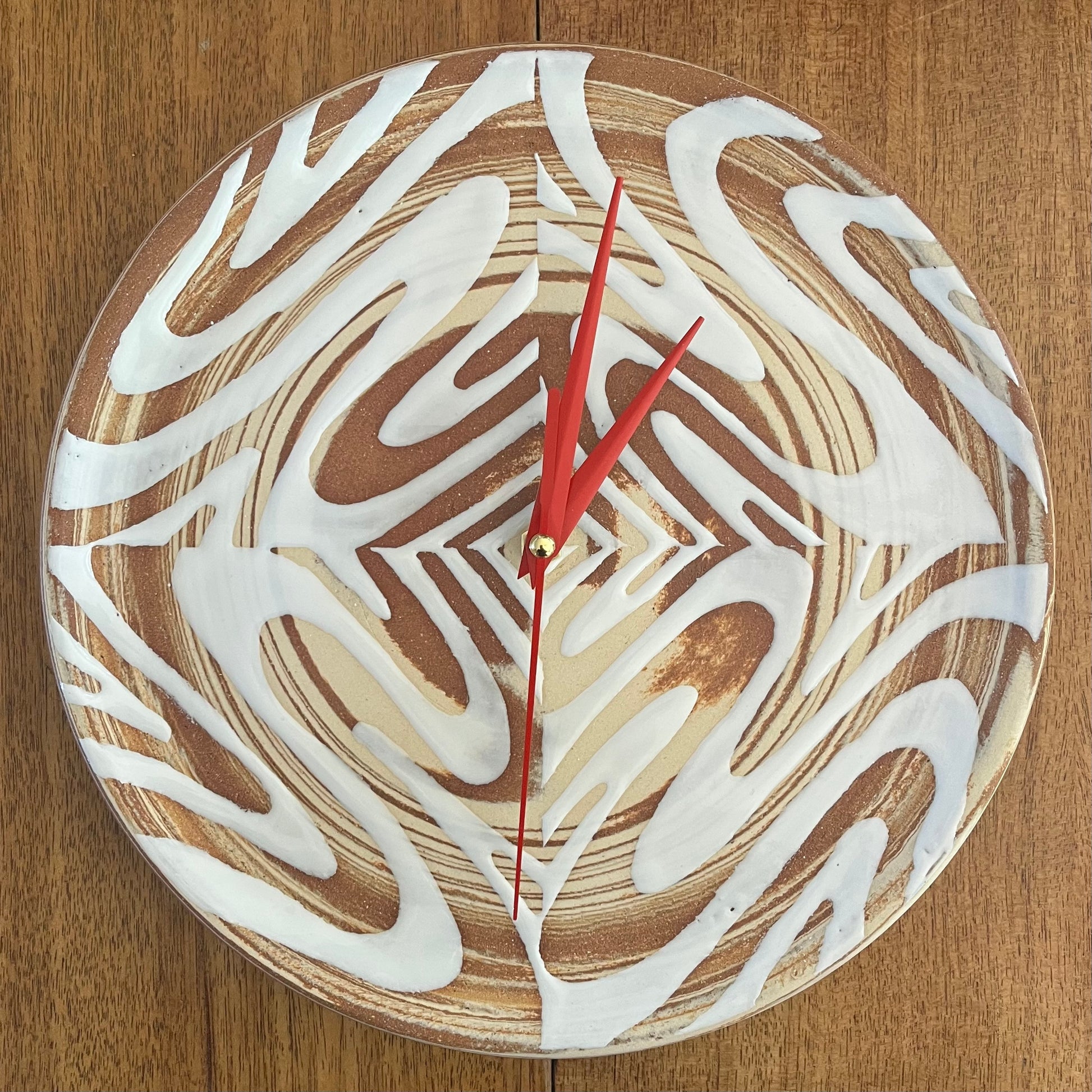 A fun clock with a wave pattern transposed and rotated every 90 degrees to make it a little easier to tell the time.
